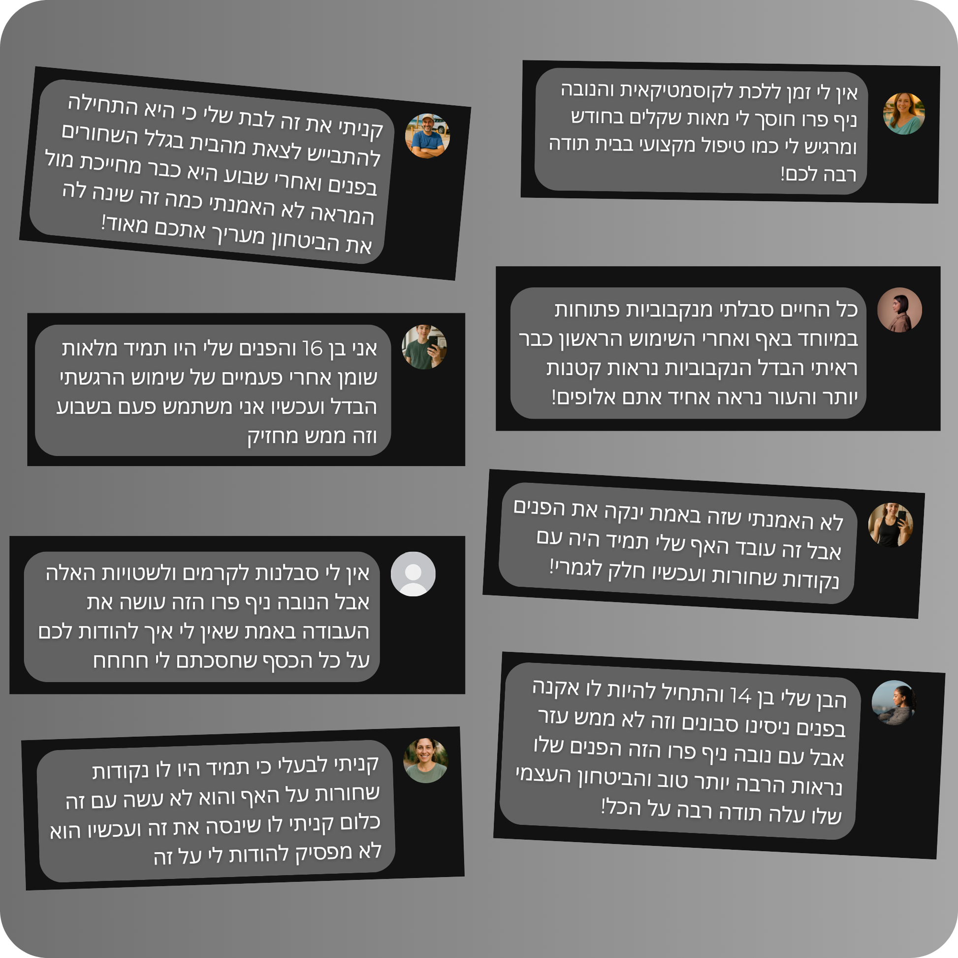 עזרנו כבר למעל 12,000 ישראלים לשמור על עור הפנים שלהם ולהפסיק לשלם מאות שקלים על טיפולים כל חודש, ומה איתכם ?
